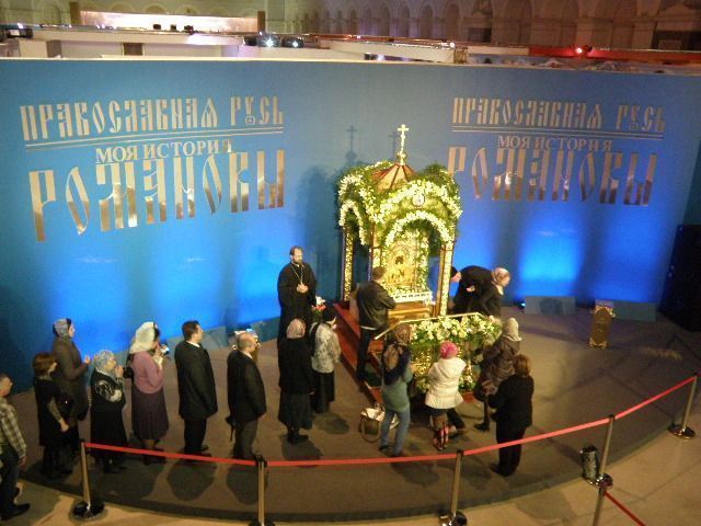 На время работы форума в Москву из Костромы привезена чудотворная Феодоровская икона Божией Матери, которой был благословлен на царство первый самодержец из рода Романовых Михаил Феодорович. Святыне до 12 октября могут поклониться все посетители выставки в «Манеже».