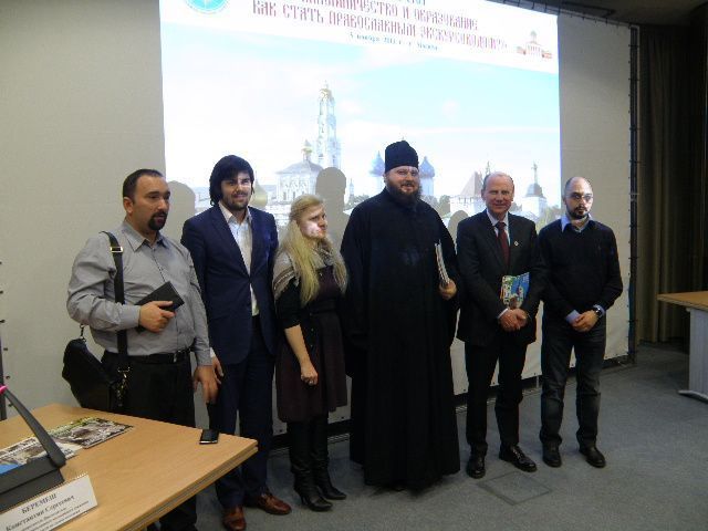 С вступительным словом выступил иеродиакон Лаврентий (Полешкевич), заместитель декана факультета церковного служения Российского православного университета, руководитель Паломнической службы Высоко-Петровского ставропигиального мужского монастыря. Он рассказал, что Паломническим центром Московского Патриархата и РПУ был создан совместный проект − курсы по обучению и повышению квалификации православных экскурсоводов. Курсы начали свою работу 16 октября нынешнего года и вызвали большой интерес не только у профессиональных гидов, но и просто у паломников и любителей русской истории.