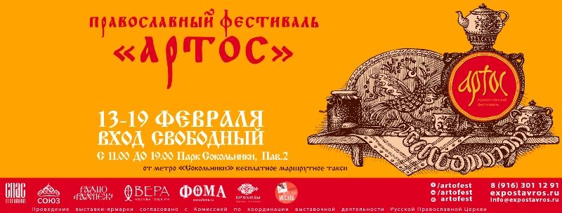 Фестиваль проводится при поддержке Русской Православной Церкви. На «Артосе» будут широко представлены православные монастыри и храмы. Среди более чем 180 экспонентов – множество приходов и монастырей России и зарубежья. Гости фестиваля смогут посетить стенды отдаленных обителей, хранящих святыни христианского мира, в частности, подворий Белоруссии, Украины, Греции, Иерусалима, Сербии и даже итальянского города Бари, где пребывают мощи одного из самых почитаемых в России святых – святителя Николая Чудотворца, архиепископа Мир Ликийских.