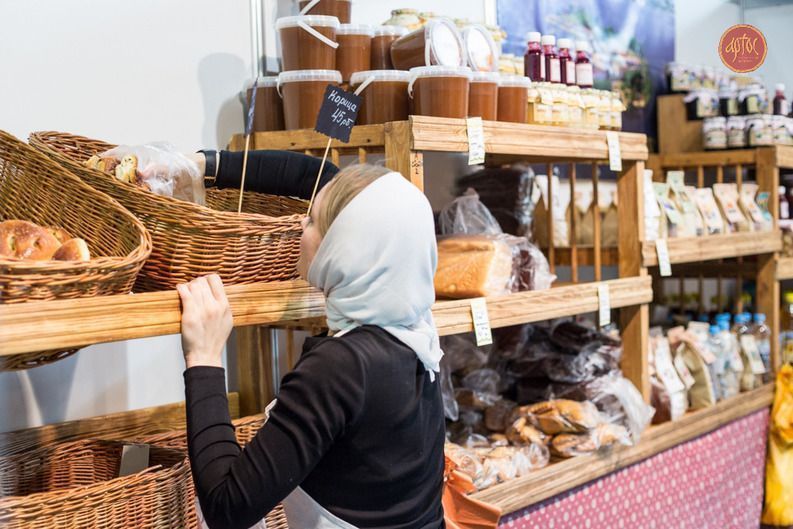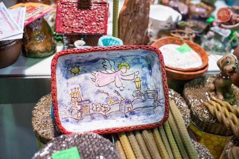 Тут и продукция гончарных мастерских, и изделия профессиональных мастеров-кукольников, мозаичистов, керамистов; а еще можно увидеть благотворительные инициативы самих верующих: работы сестричеств при храмах, игрушки, сделанные руками детей-инвалидов и учащимися воскресных школ.