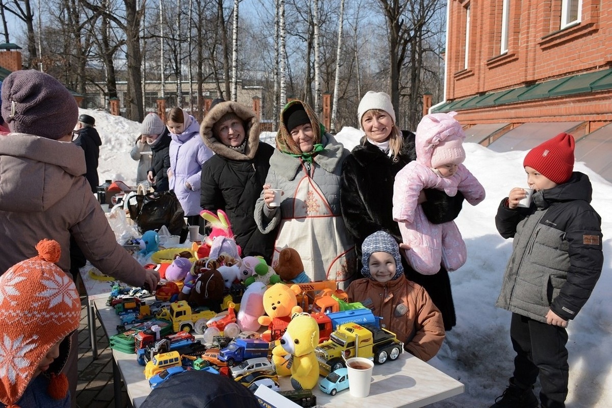 У входа в храм были расставлены столы с разнообразными товарами: мягкие игрушки, меховые тапочки, украшения для волос, разнообразная домашняя выпечка, сладости, традиционные масленичные блины на любой вкус. Всё это с удовольствием раскупали прихожане, выходившие с ранней, а потом и с поздней Божественной литургии. Вырученные средства будут направлены в детскую больницу, а также на поддержку бойцы специальной военной операции.