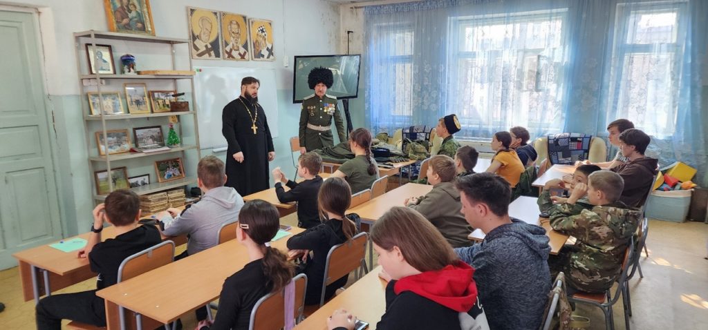 Доброволец казачьего батальона рассказал юным прихожанам биробиджанского храма о своей службе в зоне СВО