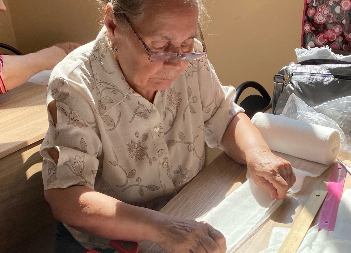 Двумя неделями ранее мастер-класс по изготовлению медицинского перевязочного материала для раненых участников специальной военной операции прошел при Троицком храме с. Долгодеревенского Челябинской области. На занятии присутствовали прихожанки и местные жители.