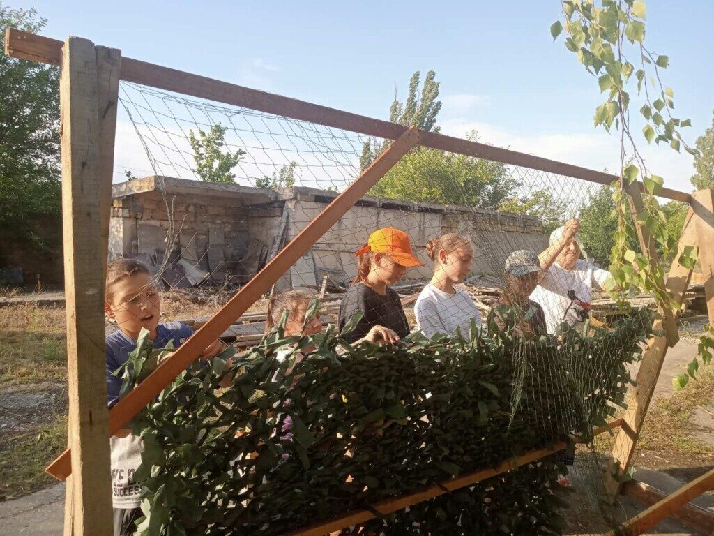 Приходы.ру 28.07.2023. Взрослые прихожане и воспитанники воскресной школы храма Рождества Христова крымского поселка Первомайское этим летом начали плести маскировочные сети для бойцов и военной техники.