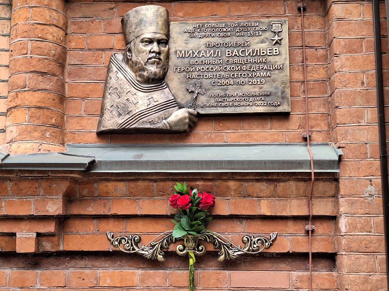 Приходы.ру 17.07.2023. 15 июля в храме Благовещения Пресвятой Богородицы при штабе Воздушно-десантных войск в Москве состоялся чин освящения и открытия мемориальной доски, посвященной Герою России протоиерею Михаилу Васильеву. Мероприятие возглавил председатель Синодального отдела по взаимодействию с Вооруженными Силами и правоохранительными органами митрополит Ставропольский и Невинномысский Кирилл.