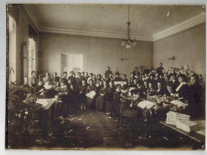 Кстати, на фотографии в данной публикации – члены дамского комитета помощи войне города Твери, который осуществлял пошив одежды для солдат в 1914 году.