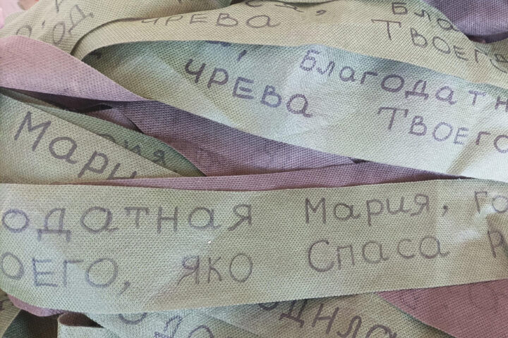 Православные прихожанки в Зауралье пишут молитвы на лентах для маскировочных сетей