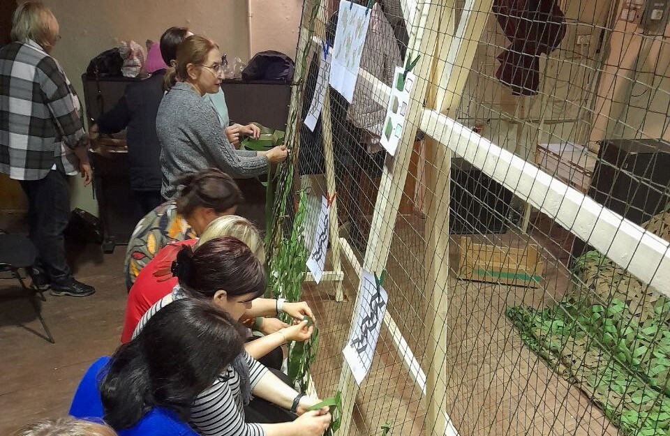 Приходы.ру 29.03.2024. 26 марта 2024 года добровольцы храма во имя преподобного Серафима Вырицкого в городе Долгопрудный Московской области прошли обучение плетению маскировочных сетей. Мастер-класс провела волонтёр благотворительного движения «Москва своих не бросает!».
