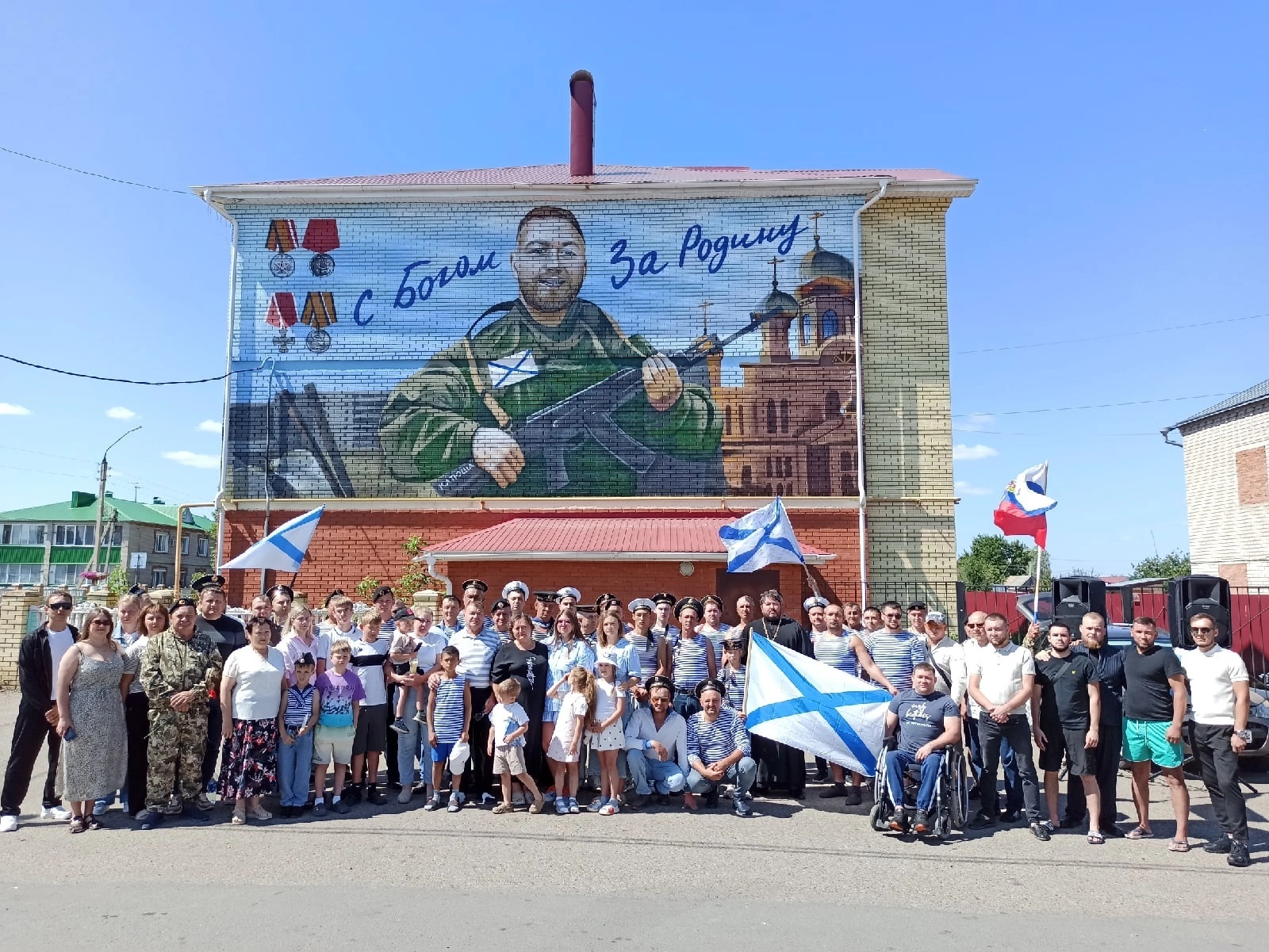 Теперь местные жители могут увидеть на стене дома изображение воина Алексия в форме и слова «С Богом за Родину!».