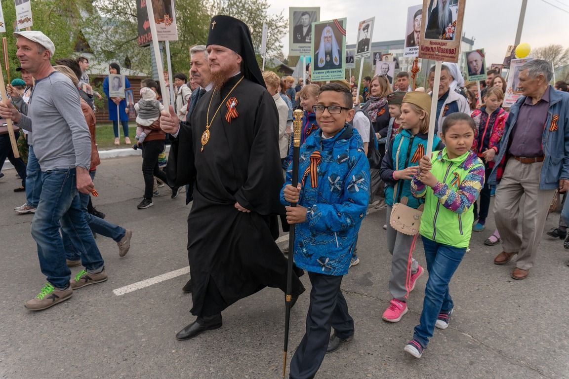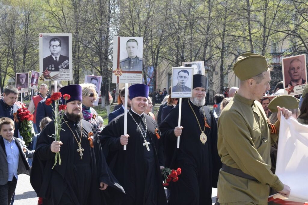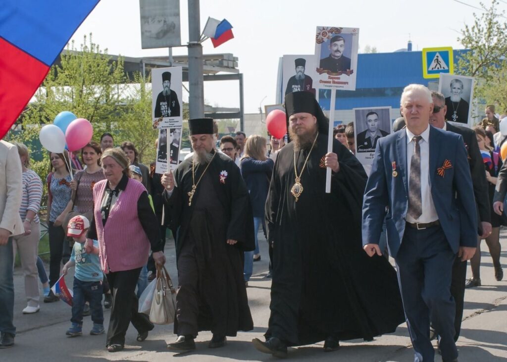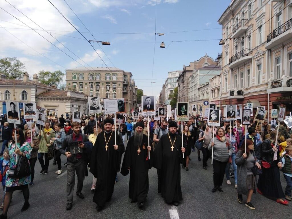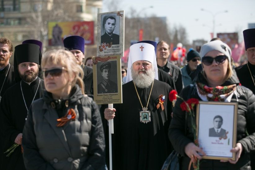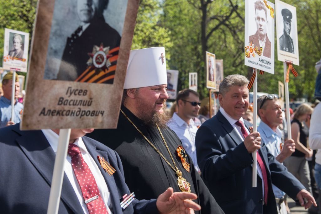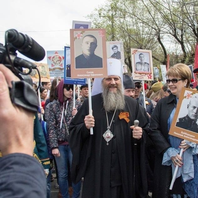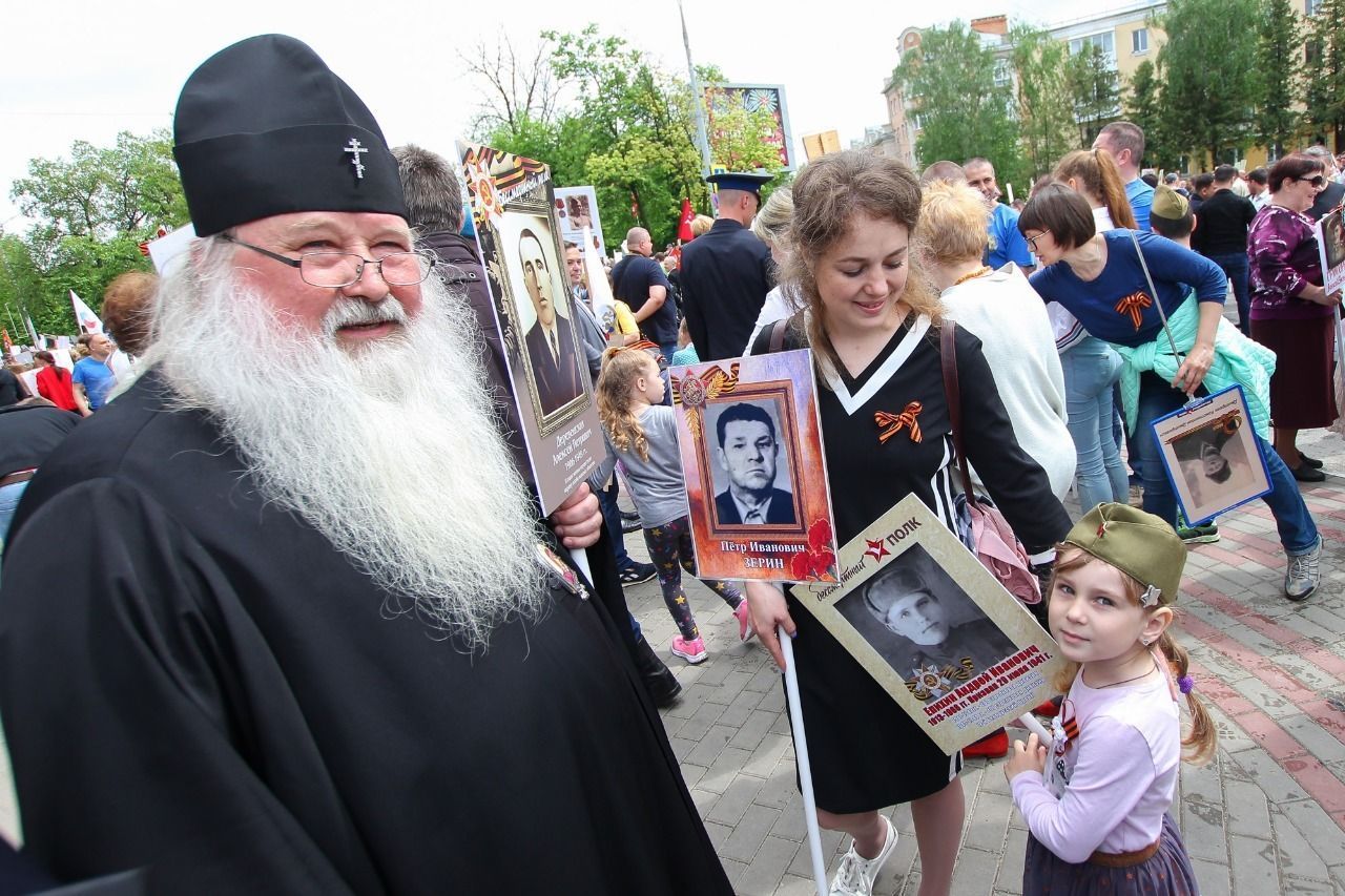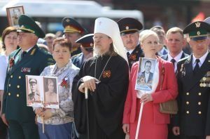 В День Победы по улицам городов в разных странах прошел совершенно особый парад – шествие «Бессмертного полка», когда в один строй встали воины, защитившие Отечество и весь мир от фашизма, и их внуки и правнуки, хранящие память о подвиге солдат, которые жертвовали собой на полях Великой Отечественной войны. Вместе с другими 9 мая портреты фронтовиков несли в общем строю прихожане православных храмов, монашествующие, священники и даже архиереи. Какие владыки прошли в рядах «Бессмертного полка»? Смотрите подготовленную порталом «Приходы» подборку фотографий из социальных сетей, со страниц епархиальных сайтов и светских СМИ.