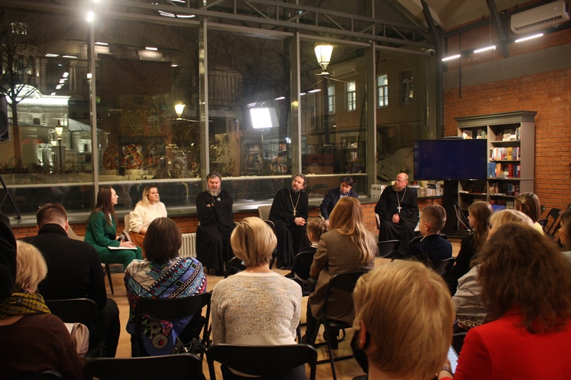 Дискуссия на площадке культурно-просветительского центра «Книжная палата в Черниговском», тема которой была изначально обозначена как «Дети в Церкви», трансформировалась в заинтересованный разговор разных поколений о подростках в пространстве христианской веры. Общая суть беседы сводилась к формулированию проблем, выстраиванию диалога между церковными родителями, священнослужителями и детьми, достигшими подросткового возраста. Основным лейтмотивом разговора стали не ответы, а именно вопросы, который ставили юные и взрослые участники. Вопросы порой острые, порой неожиданные, ответы на которые дадут деятельная миссионерская работа и время.