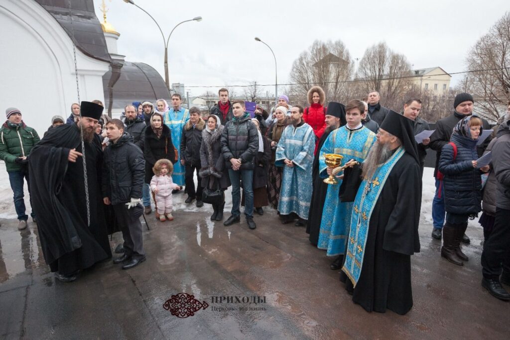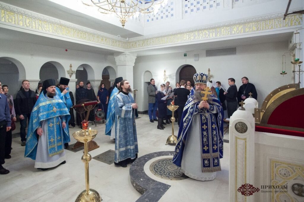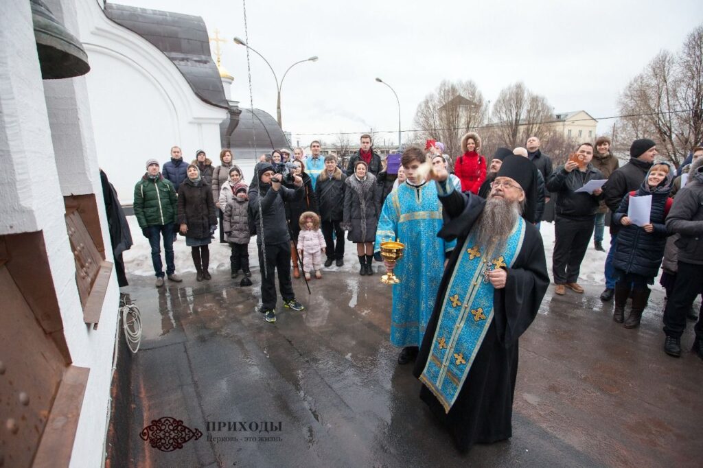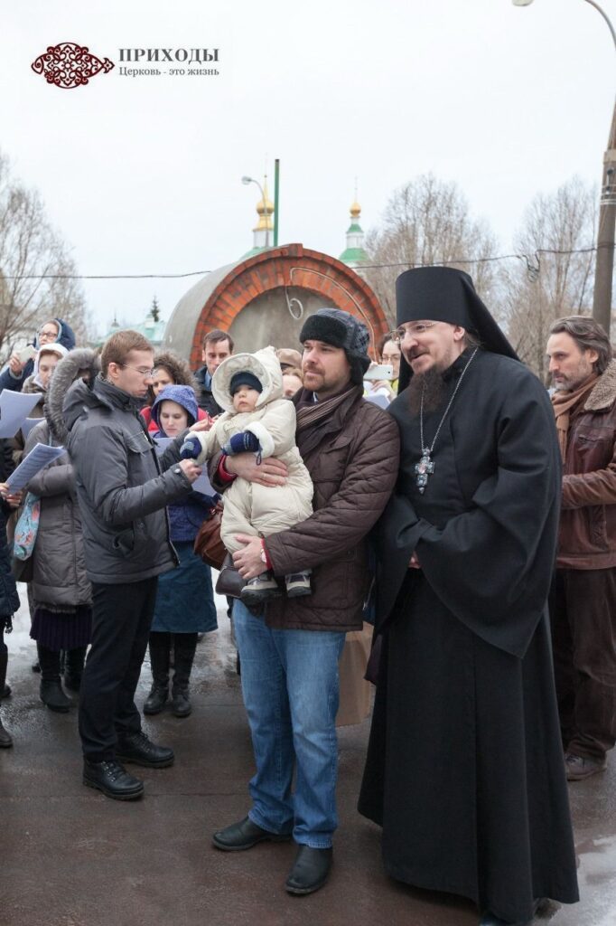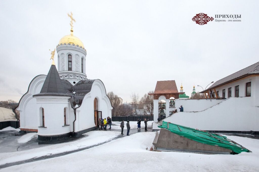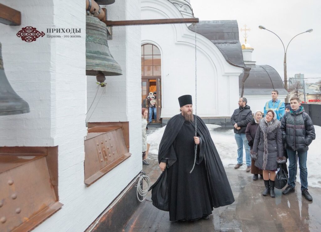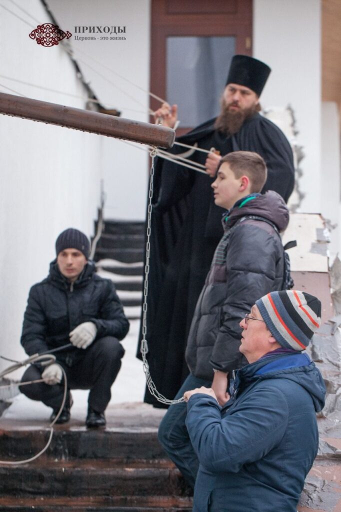 15 февраля в храме Центра духовного развития молодежи при Даниловом монастыре Москвы впервые было совершено уставное богослужение. Это событие приурочили к престольному торжеству храма – празднику Сретения Господня, сообщили в пресс-службе обители. Хотя здание ЦДРМ еще только строится, в храме уже началась молитвенная жизнь. В праздник также впервые «заговорила» недавно оборудованная звонница. После литургии наместник монастыря архимандрит Алексий (Поликарпов) окропил колокола святой водой, затем прозвучал первый уставной звон. Особенностью звонницы является возрожденный древний тип звона – очепный: благовестник озвучивается ударами о язык при раскачивании самого колокола. Насколько известно, в настоящий момент в России такой звон используется за богослужением только в Псково-Печерском монастыре. Фотограф Владимир Горбунов (www.vgphoto.ru)