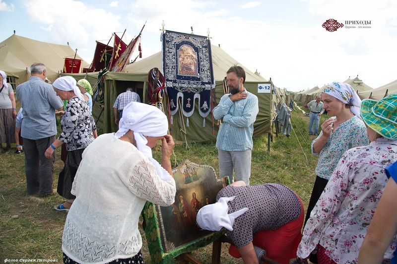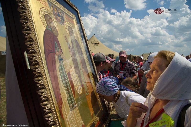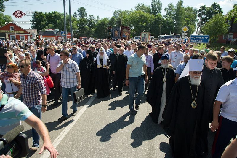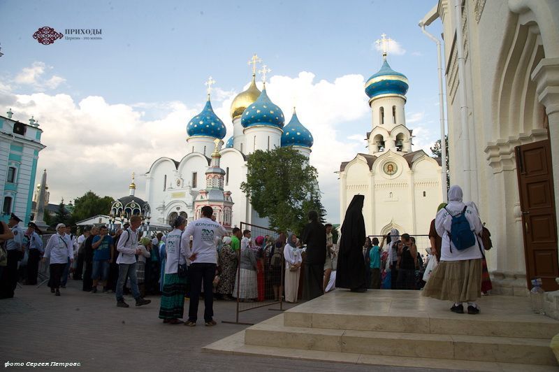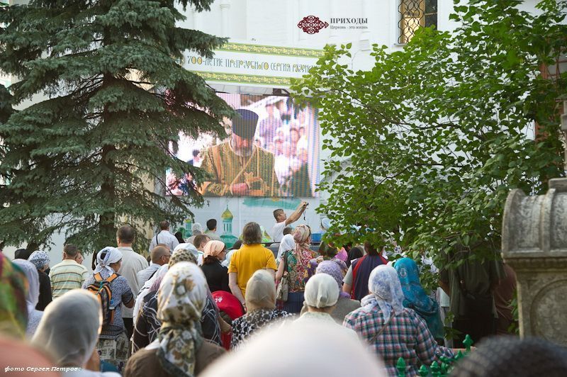 Хотя 700-летие преподобного Сергия Радонежского отмечают в течение всего года и буквально на всех континентах, кульминацией празднования стали общецерковные торжества, которые проходят 16-18 июля на месте подвигов Игумена земли Русской. День рождения святого не известен, поэтому юбилей празднуется в годовщину обретения его честных мощей. В первый день торжеств от Хотькова монастыря, где пребывают мощи преподобных Кирилла и Марии – родителей реподобного Сергия Радонежского, до Благовещенского поля города Сергиева Посада прошел крестный ход . Длина пути составила 15 километров, при этом была сделана всего одна остановка. В молитвенном шествии, которое возглавил Святейший Патриарх Кирилл, приняли участие десятки тысяч человек, в том числе 60 иерархов, более 400 священнослужителей, монашествующие, делегации от епархий Русской Православной Церкви, казаки, паломники из разных регионов России. В торжествах участвуют верующие из более чем ста епархий Русской Православной Церкви; они добирались к лавре на различных видах транспорта, некоторые шли в обитель пешком. По данным МВД, только за десять часов 18 июля число людей, посетивших Свято-Троицкую Сергиеву лавру, превысило 50 тысяч человек. Фоторепортаж Сергея Петрова
