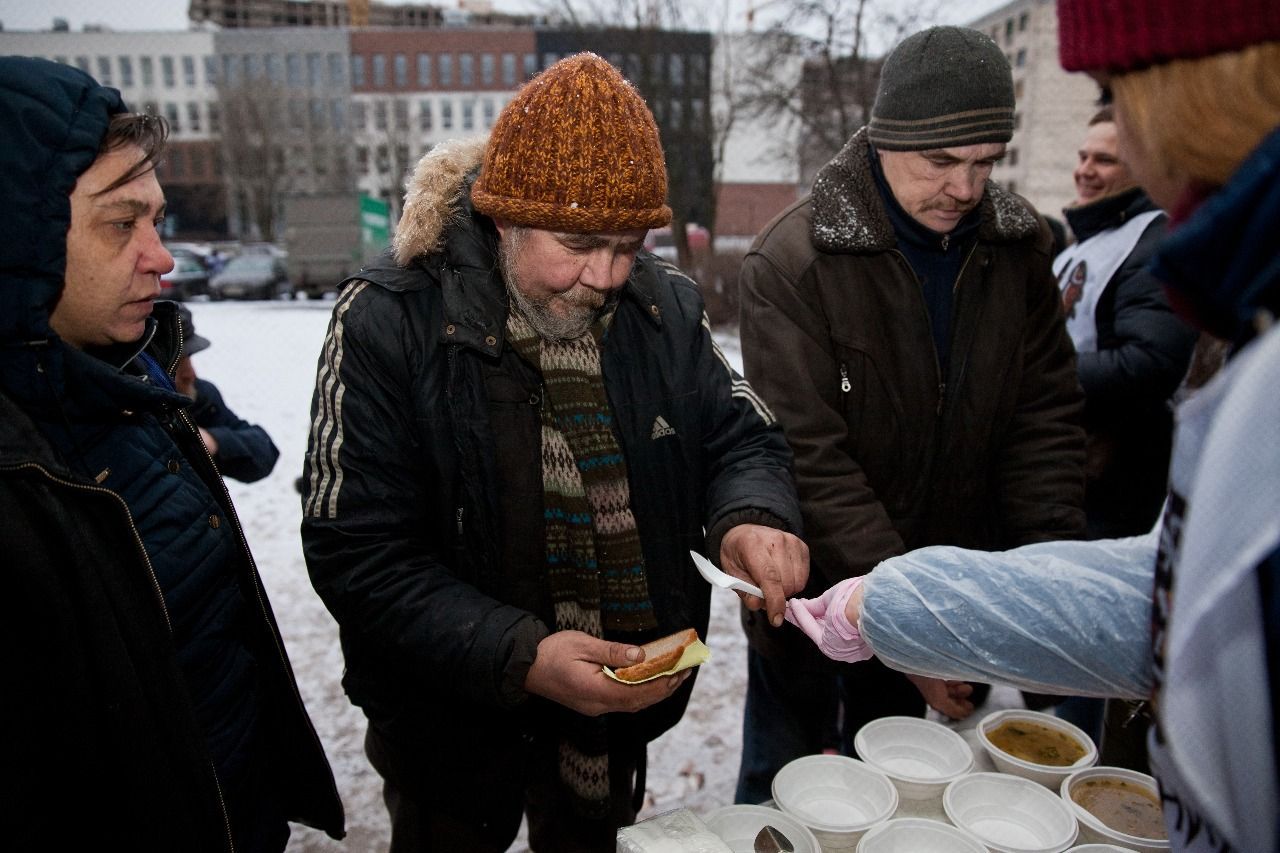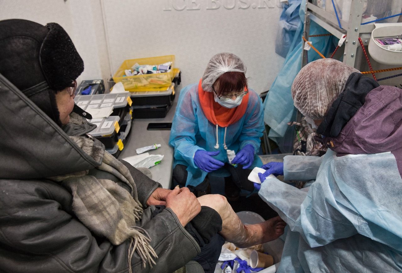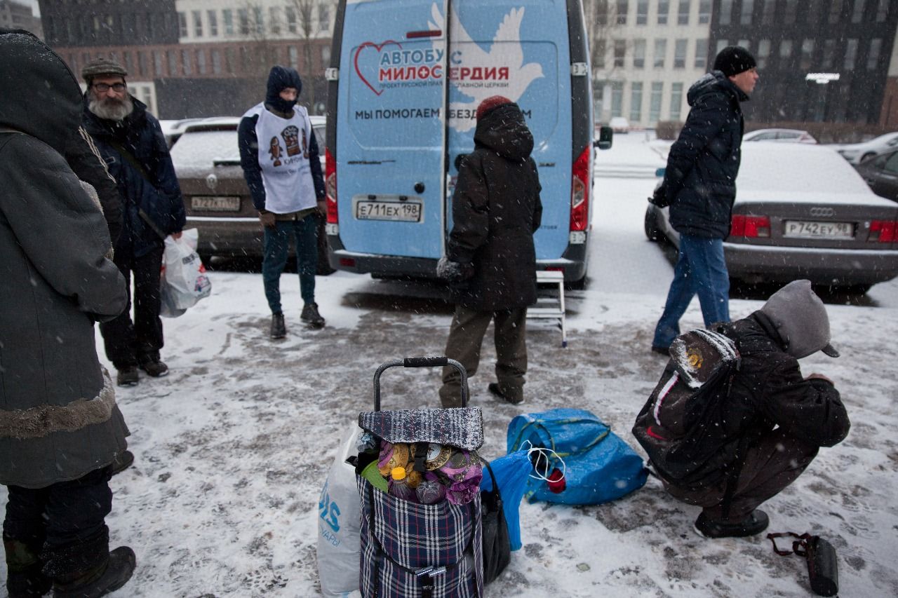 В конце прошлого года в Санкт-Петербурге появился первый в городе мобильный медпункт для бездомных людей. Это не проект какой-то известной общественной организации и не результат работы городских властей, а инициатива одного церковного прихода, точнее даже, нескольких человек из приходского молодёжного клуба храма Рождества Христова на Пискарёвском проспекте. Дело это зрело сравнительно недолго – всего лишь за четыре года небольшая группа волонтёров прошла путь от угощения живущих в окрестностях храма бездомных бутербродами до планов уже не приходского, а городского масштаба. Фото Ольги ФЁДОРОВОЙ