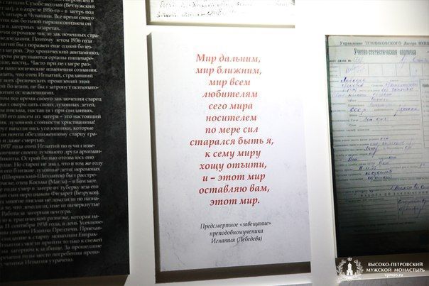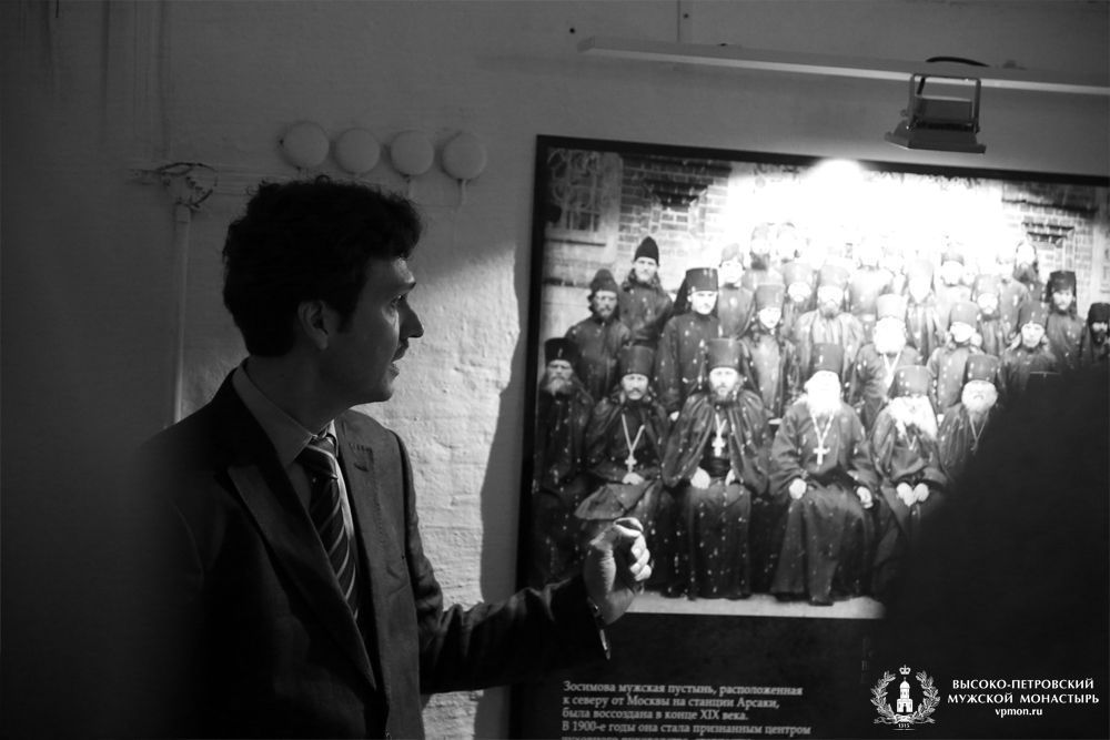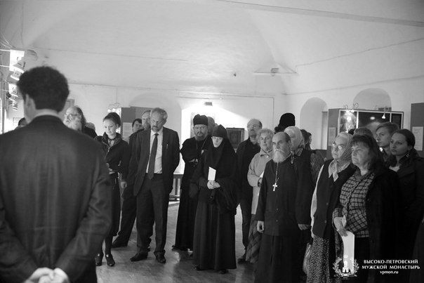 Уникальная экспозиция впервые открывает перед широким зрителем внутренний мир тайных монашеских общин Высоко-Петровского монастыря – одного из духовных центров Москвы 1920–1930-х годов. Общин, которые сохранили традицию русского монашества в Москве даже после закрытия и разорения монастыря. Открытие выставки состоялось 3 сентября, накануне престольного праздника монастыря. Расположилась экспозиция в Нарышкинских палатах Высоко-Петровской обители. Открыл выставку игумен Петр (Еремеев), наместник монастыря. Отец Петр приветствовал всех находящихся в зале, поблагодарил организаторов выставки, а так же отметил важность сохранить в человеческой памяти моменты истории, особенно такого нелегкого периода церковной жизни. «Хотел поделиться еще одним впечатлением в этой связи. Думаю это будет очень близко многим священникам. Вот когда совершаешь проскомидию и поминаешь почившую братию монастыря, то вдруг замечаешь, что уже перешел на здравствующих и о себе помолился. Удивительным образом стираются привычные границы «О Упокоении» и «О Здравии», возникает такое особое чувство единства во Христе прежде жившей братии и братии которые сегодня подвизаются на Петровке», — заключил отец Петр. В своем приветственном слове отец Наместник также затронул еще одну очень интересную тему посвящению грядущему юбилею монастыря. Отец Петр буквально впервые продемонстрировал почтовую марку выпущенную ФГУП Издатцентр «Марка», посвященную юбилею Высоко-Петровского монастыря. Наместник подарил присутствующим на открытии выставки юбилейные марки. «Уже в эту субботу сразу после гашения марки, которое состоится в этом зале в 16.00, у каждого из вас будет возможность собственноручно погасить эту марку и таким образом пополнить свою коллекцию редких марок», — сказал игумен Петр. После приветствия наместника к собравшимся обратился Леонид Андреевич Беляев – археолог, историк архитектуры, который в свое время работал на раскопках храма святителя Петра и близлежащего монастырского некрополя. Леонид Андреевич отметил важность создания при монастырях музеев, выставок, экспозиций, посвященных истории монастырской жизни. «Данная экспозиция станет хорошим началом создание великолепного музея посвящение всей истории Высоко-Петровского монастыря, а значит и нашего города и страны», — выразил надежду известный ученый. К собравшиеся так же обратился организатор выставки – Алексей Львович Беглов, кандидат исторических наук, старший научный сотрудник Института всеобщей истории РАН. Алексей Львович детально описал предпоссылкы появление такого явления как тайная монашеская община и условия ее возникновения в Высоко-Петровском монастыре. Вниманию гостей был предложен фильм, посвящённый теме экспозиции. В сьемках фильма приняли участие наместник монастыря игумен Петр (Еремеев), организатор выставки Алексей Львович Беглов. В фильм также был включен фрагмент записи рассказа схимонахини Игнатии (Пузик), которая поведала о ее личном пути и о тайной Петровской монашеской общине. После просмотра фильма гостям была презентована сама выставка. На выставке представлены оригиналы и фотокопии уникальных фотографий и документов (более 70-ти), а также вещи из частных и церковных собраний. Экспозиция состоит из нескольких разделов. Алексей Львович открыл 