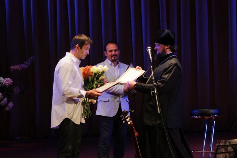 21 августа 2015 года в Димитровграде состоялся благотворительный творческий вечер Народного артиста России Дмитрия Певцова. Концерт прошел в рамках акции по сбору средств на строительство в городе храма святого великомученика Димитрия Солунского. В программе прозвучали любимые всеми песни из репертуара артиста, затем он ответил на вопросы зрителей, которые присылали свои записки. По окончании концерта епископ Мелекесский и Чердаклинский Диодор обратился к Дмитрию Певцову и его директору Андрею Вертузаеву со словами благодарности. – Хочу поблагодарить Вас, Дмитрий, в первую очередь, за Вашу дружбу, а также за то, что Вы первым откликнулись на нашу нужду и согласились стать попечителем строящегося храма. Господь наделяет человека талантом для того, чтобы он делился им с окружающими и приносил этим пользу, – отметил архипастырь. – Вы в полной мере используете свой талант для того, чтобы нести людям добро и любовь. Владыка дал старт акции «Именной кирпич – в стену храма», вручив сертификат под номером один первому попечителю храма. А начался этот день народного артиста со встречи с епископом Диодором в здании епархиального управления. Участники встречи посетили Никольский храм, где приложились к мощам святого Гавриила Мелекесского. Затем гостей ждало чаепитие с пирогами, приготовленными искусными поварами епархии. Затем Дмитрий Певцов вместе с епископом Диодором посетили Преображенский кафедральный собор и Георгиевский храм города Димитровграда. На месте, где планируется возвести Димитриевскую церковь, глава города ознакомил попечителя храма Дмитрия Певцова и епископа Диодора с планом территории и перспективами развития района, в котором храм будет построен. Информация и фотографии пресс-службы Мелекесской епархии