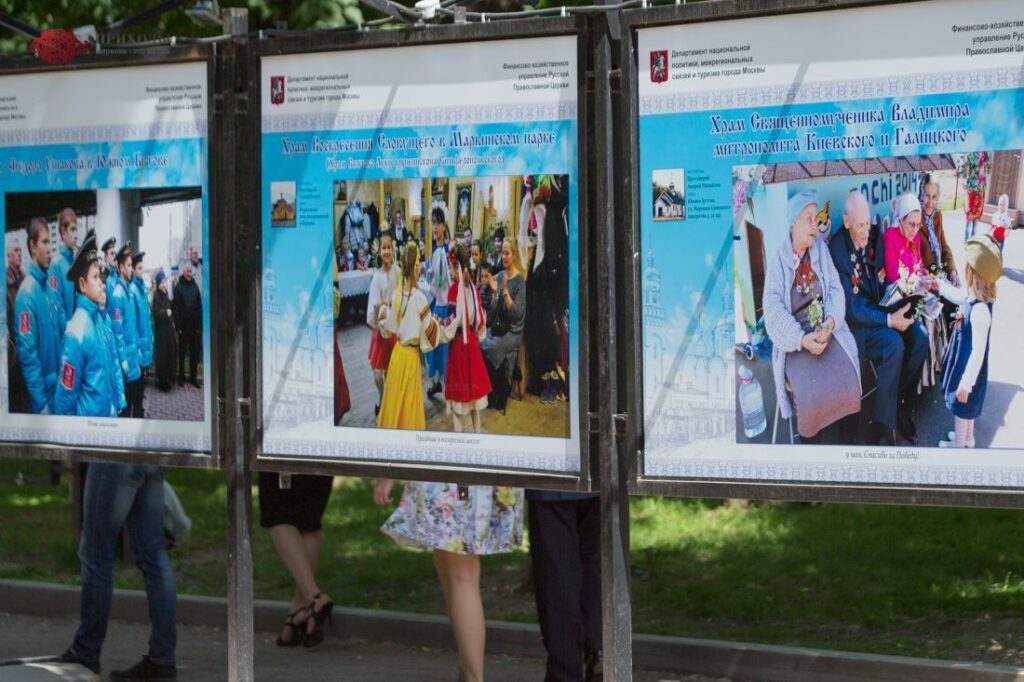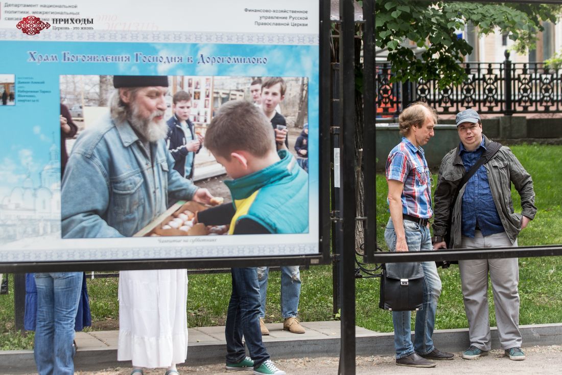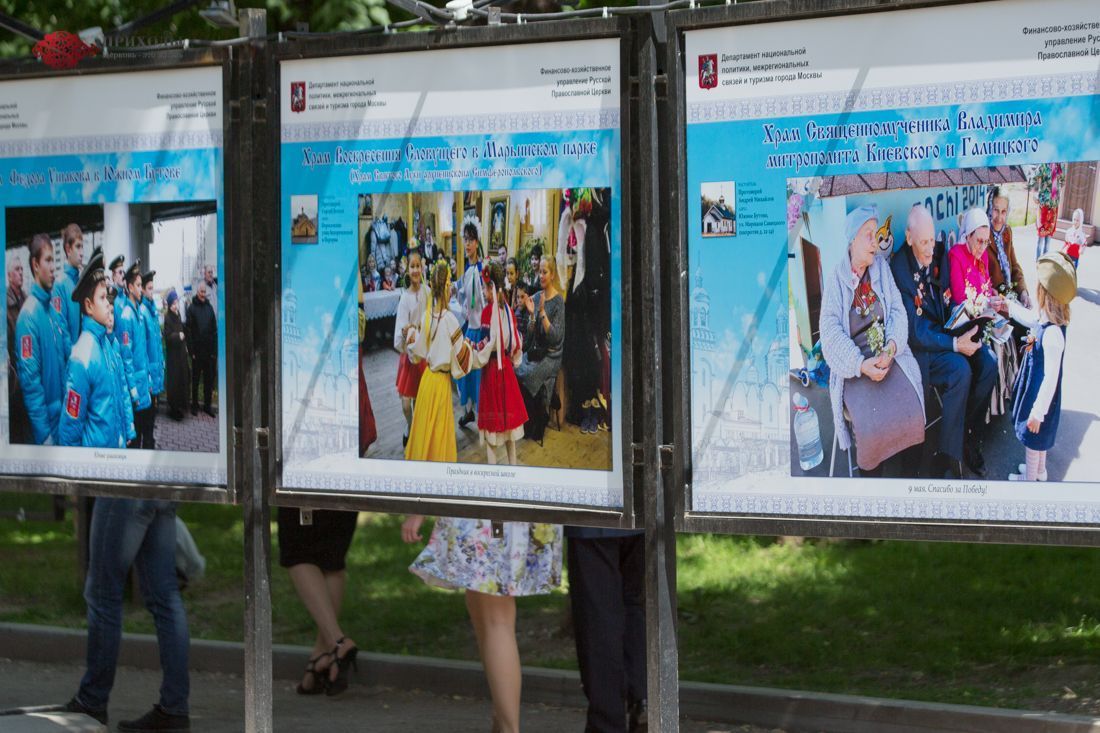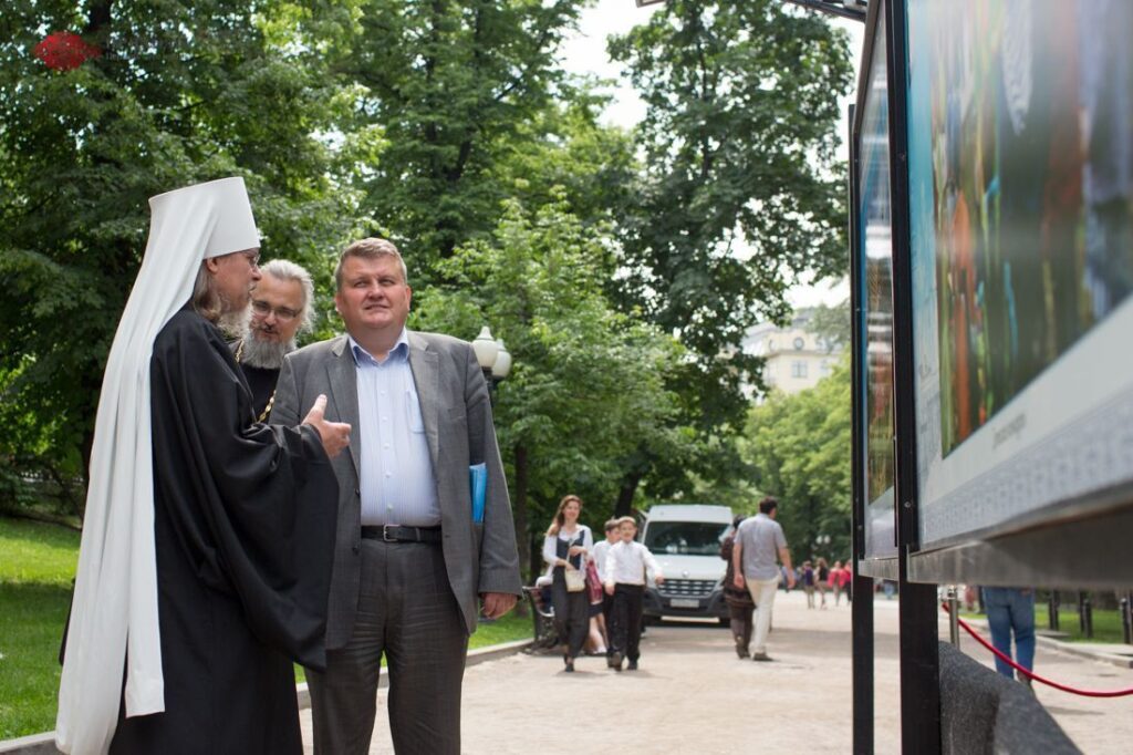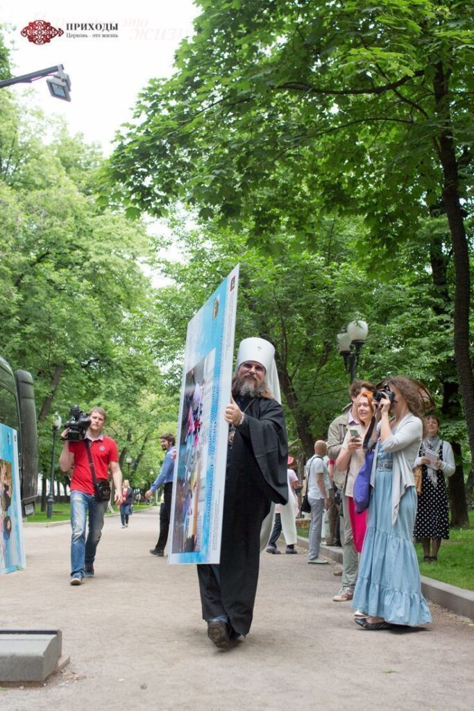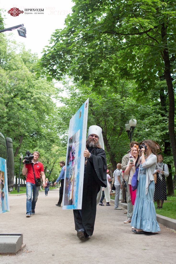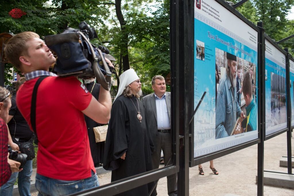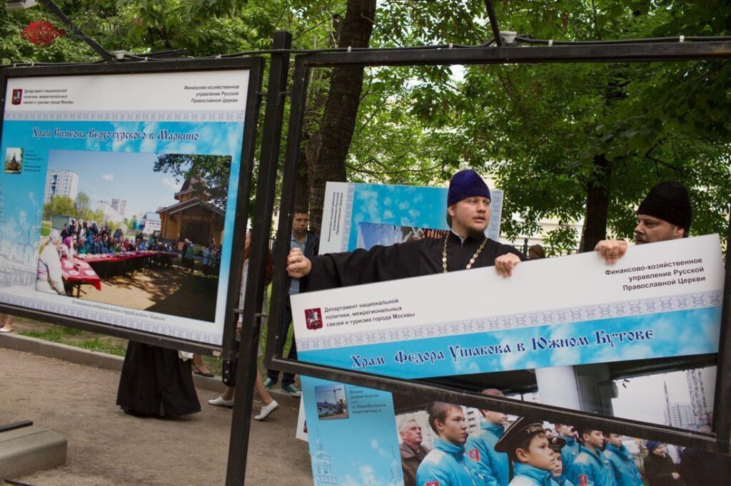 2 июня на Гоголевском бульваре открылась фотовыставка под открытым небом, посвященная социальным проектам новых православных приходов, появившихся в Москве благодаря Программе строительства православных храмов. Всего на выставке представлено 32 фото. Это лучшие снимки, отобранные по итогам конкурса, в котором приняли участие 26 новых православных приходов города Москвы, представившие в фотографиях свои благотворительные акции, приходские детские кружки, культурно-исторические праздники для жителей района и прочее. В церемонии открытия выставки приняли участие руководитель Департамента национальной политики, межрегиональных связей и туризма города Москвы В.В. Черников и председатель Финансово-хозяйственного управления Русской Православной Церкви митрополит Рязанский и Михайловский Марк. Фото Марии ТЕМНОВОЙ