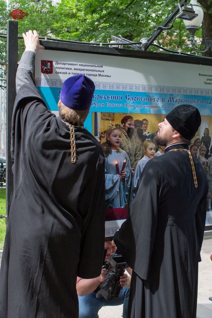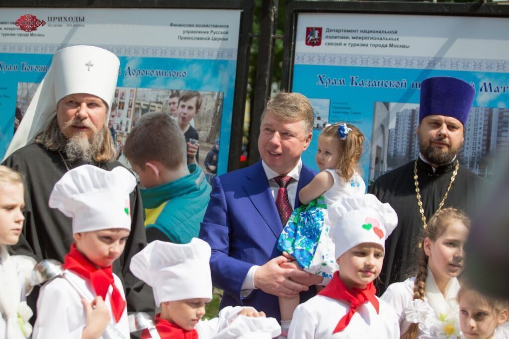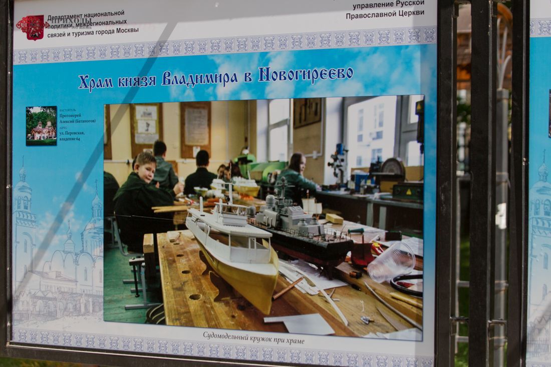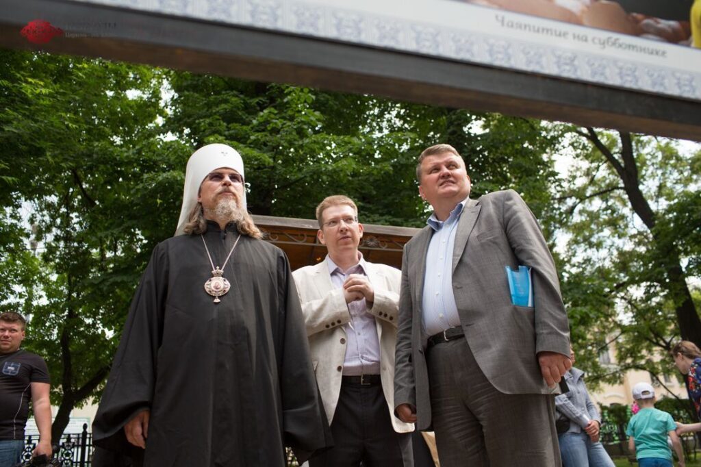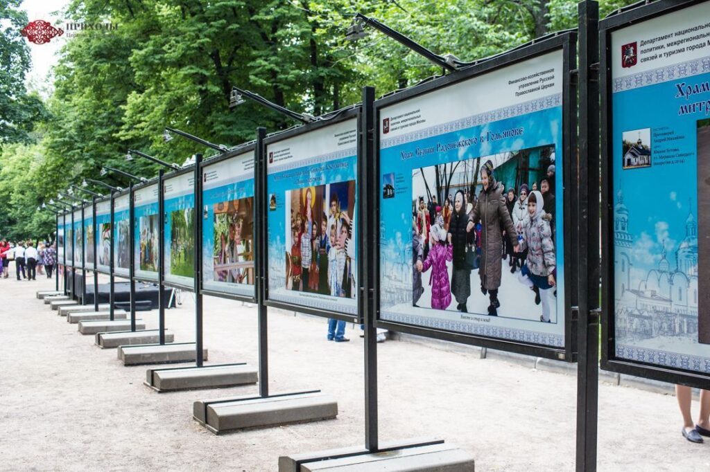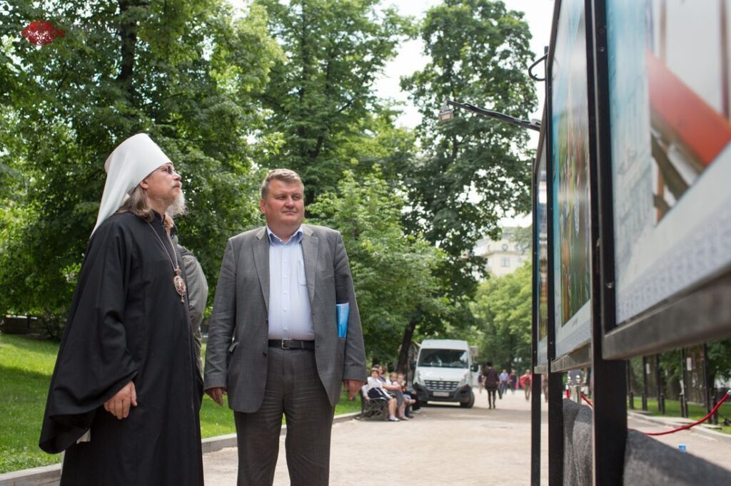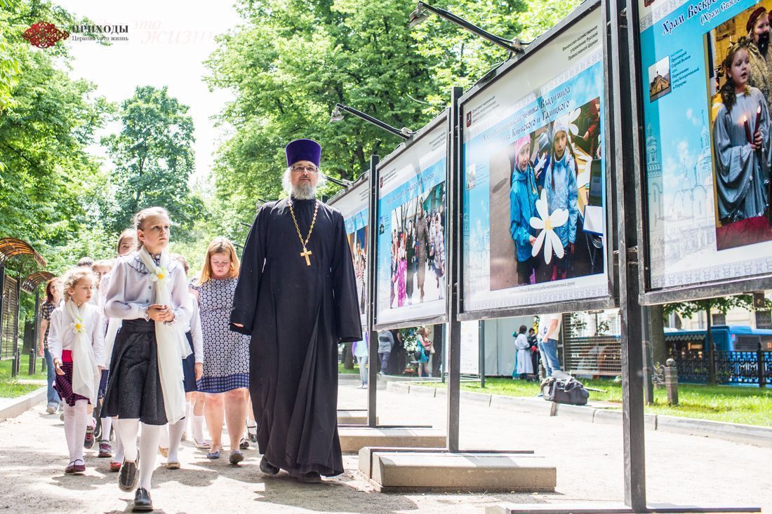2 июня на Гоголевском бульваре открылась фотовыставка под открытым небом, посвященная социальным проектам новых православных приходов, появившихся в Москве благодаря Программе строительства православных храмов. Всего на выставке представлено 32 фото. Это лучшие снимки, отобранные по итогам конкурса, в котором приняли участие 26 новых православных приходов города Москвы, представившие в фотографиях свои благотворительные акции, приходские детские кружки, культурно-исторические праздники для жителей района и прочее. В церемонии открытия выставки приняли участие руководитель Департамента национальной политики, межрегиональных связей и туризма города Москвы В.В. Черников и председатель Финансово-хозяйственного управления Русской Православной Церкви митрополит Рязанский и Михайловский Марк. Фото Марии ТЕМНОВОЙ
