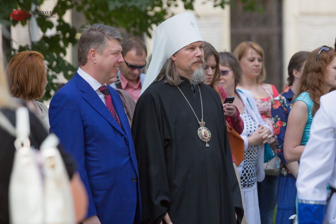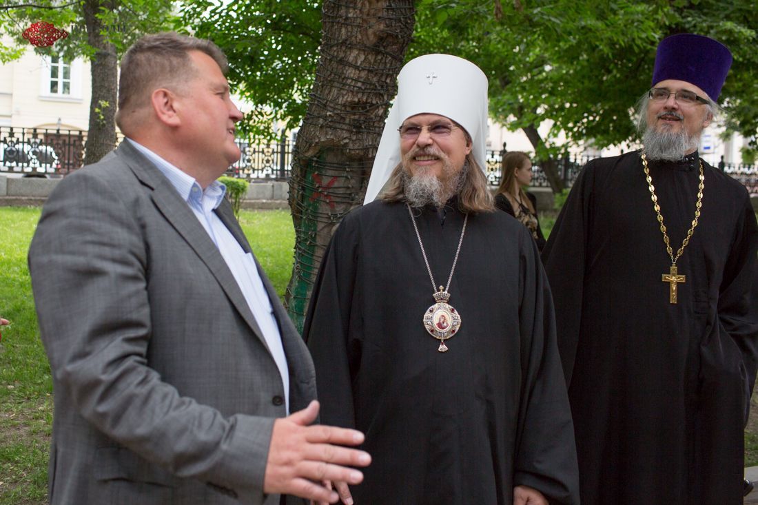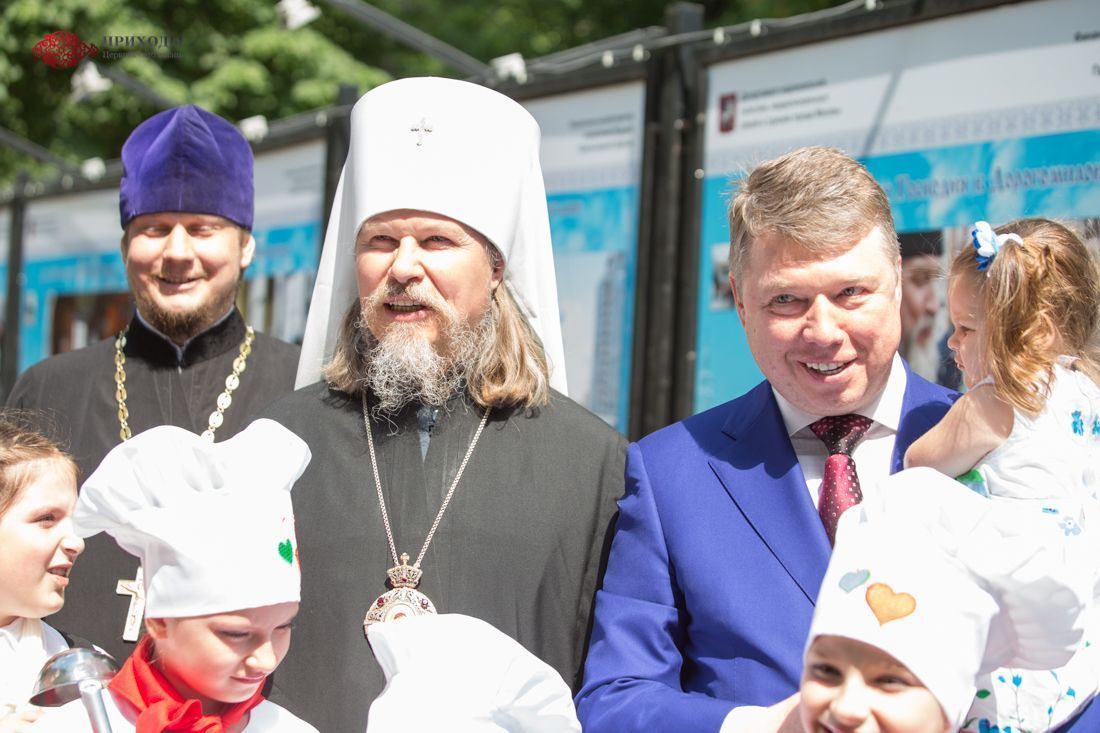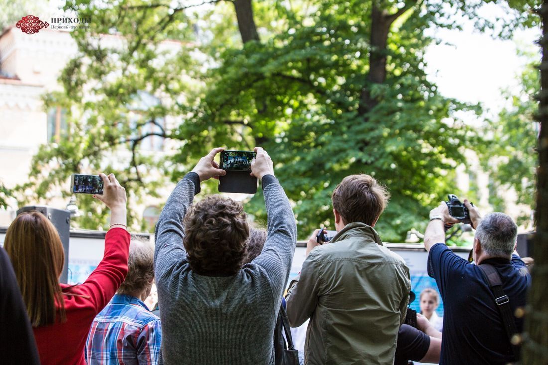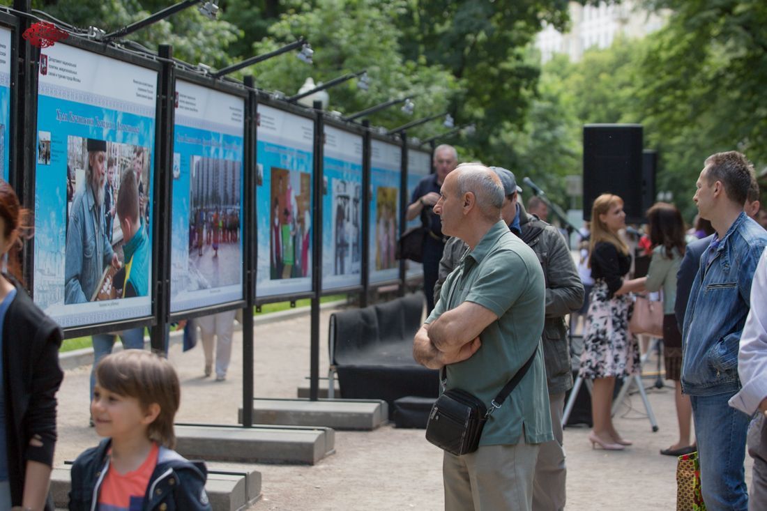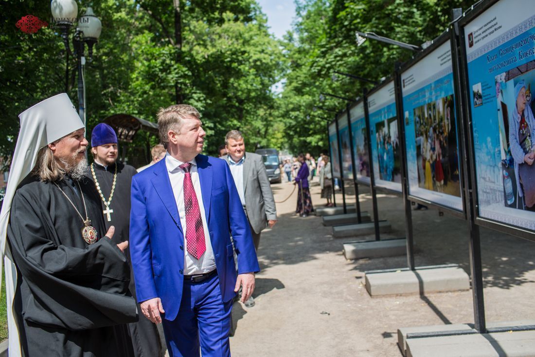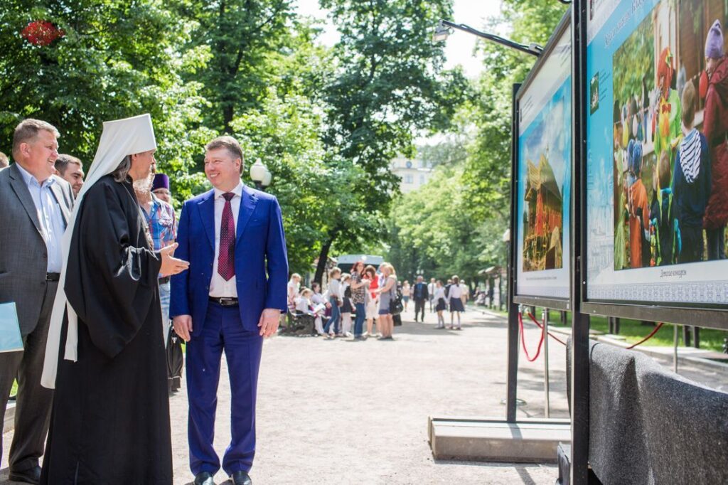 2 июня на Гоголевском бульваре открылась фотовыставка под открытым небом, посвященная социальным проектам новых православных приходов, появившихся в Москве благодаря Программе строительства православных храмов. Всего на выставке представлено 32 фото. Это лучшие снимки, отобранные по итогам конкурса, в котором приняли участие 26 новых православных приходов города Москвы, представившие в фотографиях свои благотворительные акции, приходские детские кружки, культурно-исторические праздники для жителей района и прочее. В церемонии открытия выставки приняли участие руководитель Департамента национальной политики, межрегиональных связей и туризма города Москвы В.В. Черников и председатель Финансово-хозяйственного управления Русской Православной Церкви митрополит Рязанский и Михайловский Марк. Фото Марии ТЕМНОВОЙ