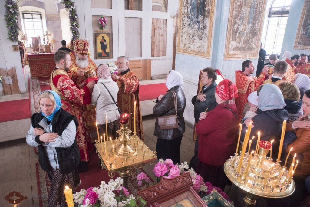 28 мая исполнилось 25 лет со времени возобновления монашеской жизни на острове Коневец в Ладожском озере. В этот день Божественную литургию в Коневском Рождества Богородицы мужском монастыре отслужил священноархимандрит обители епископ Выборгский и Приозерский Игнатий. После богослужения священнослужителям и паломникам был показан документальный фильм об истории обители. Этот кинопоказ стал началом праздничного вечера: приветствия и воспоминания перемежались выступлениями ансамбля «Коневец-квартет», исполнявшего и духовные песнопения, и светскую музыку. Фото Сергея ПЕТРОВА