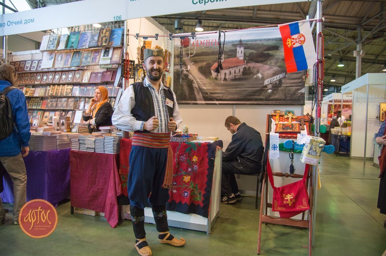 До 10 мая продлится Пасхальный фестиваль «Артос», который собрал в Москве представителей Православных Церквей разных стран. Впервые в рамках одного форума представлены праздничные традиции многих государств, объединенные общей темой «Пасха славянских народов». Торжественное открытие фестиваля «Артос» состоялось 4 мая в конгрессно-выставочном центре «Сокольники». Почетными гостями церемонии стали директор Греческого культурного центра Теодора Янници, первый секретарь Посольства и атташе по туризму Республики Болгария Катя Жекова, атташе по культуре болгарского Посольства Кристина Дражева, заместитель главы Представительства Республики Сербской в Москве И.С. Морозов. Предваривший начало фестиваля молебен совершил руководитель протоиерей Сергий Звонарев, секретарь Отдела внешних церковных связей по делам дальнего зарубежья. Фотографии Марии Темновой, Михаила Свешникова и Пресс-службы КВЦ «Сокольники»