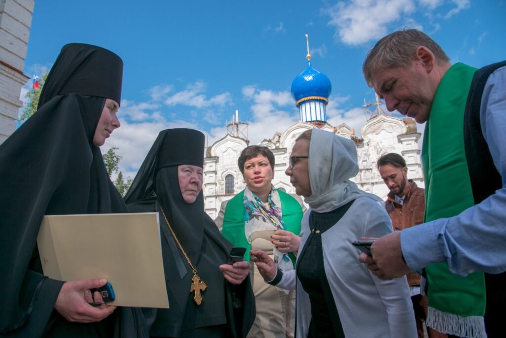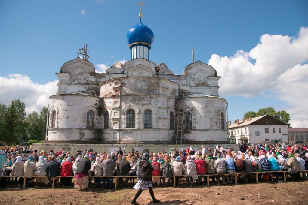 14 июня Святейший Патриарх Московский и всея Руси Кирилл возглавил торжества по случаю 25-летия канонизации святого праведного Иоанна Кронштадтского на малой родине святого – в селе Сура Пинежского района Архангельской области. Предстоятель Русской Православной Церкви возглавил служение Божественной литургии в Успенском храме Иоанно-Богословского женского монастыря, основанного в 1899 году по инициативе святого Иоанна Кронштадтского. На торжества в Суру собрались представители 138 епархий России, ближнего и дальнего зарубежья, в том числе из Австралии, Бразилии, Германии, Италии, Ирана, Канады, Норвегии, Пакистана, США и Чили, иерархи и священнослужители, члены «Иоанновской семьи» из 22 стран мира. «Иоанновская семья» — содружество храмов, приходов и социальных учреждений, особо почитающих память святого праведного Иоанна Кронштадтского, связанных общей молитвой, желанием помогать друг другу и совместно трудиться, сообщает Пресс-служба Патриарха Московского и всея Руси. Фото Сергея ПЕТРОВА