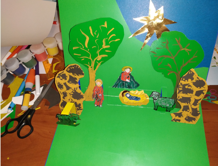 Главная - Фотозарисовки: приходы, люди, судьбы - Рождественский вертеп из детских рисунков. Учимся технике pop-up