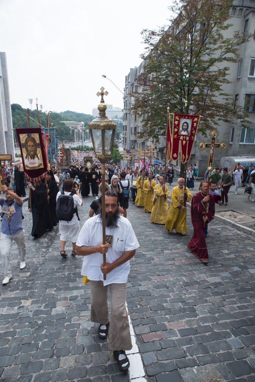 Несколько недель продолжался Всеукраинский крестный ход мира, любви и молитвы. Десятки тысяч паломников преодолели сотни километров, несмотря на погодные условия, трудности пути, а также провокации экстремистов, пытавшихся остановить молитвенное шествие, не допустить его в Киев. Два крыла крестного хода начали свой путь от Святогорской Лавры на Востоке страны и от Почаевской – на Западе, чтобы 27 июля встретиться и завершить шествие в Киево-Печерской Лавре. В этот день участники крестного хода объединили свои молитвы с киевлянами – в общей сложности по улицам города прошли более 80 тысяч верующих. На Владимирской горке вместе с Блаженнейшим митрополитом Киевским и всея Украины Онуфрием они молились о мире на Украине. Фоторепортаж с места событий – Иван НАКОНЕЧНЫЙ специально для портала «Приходы»