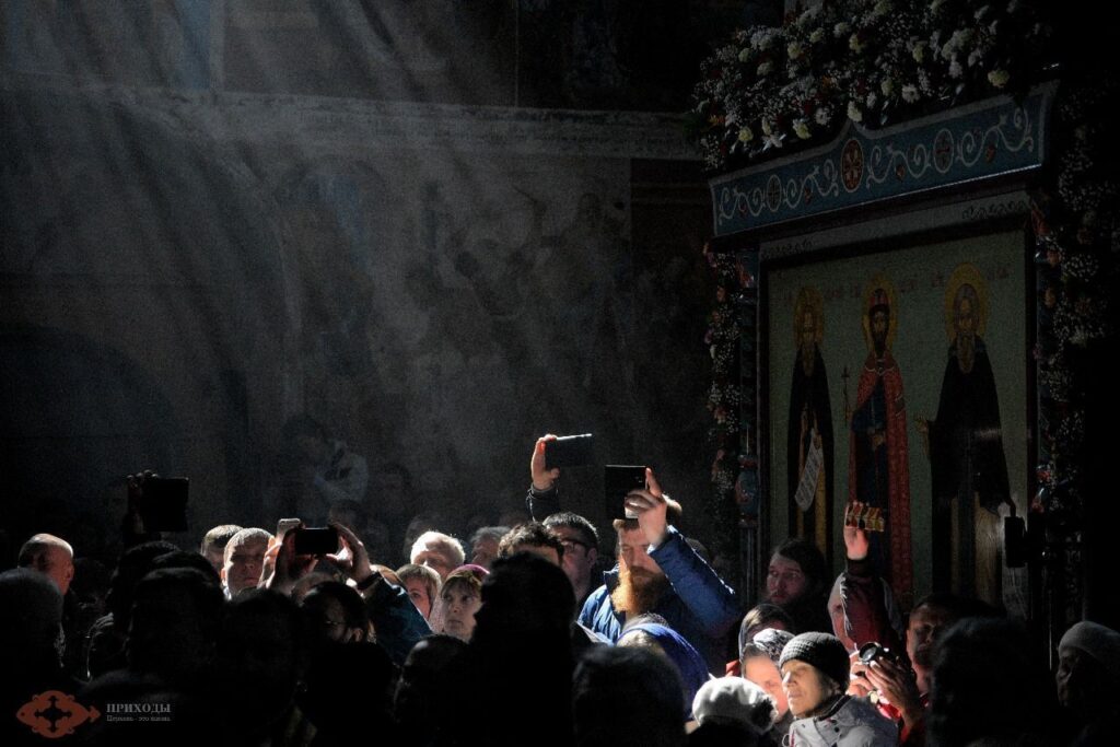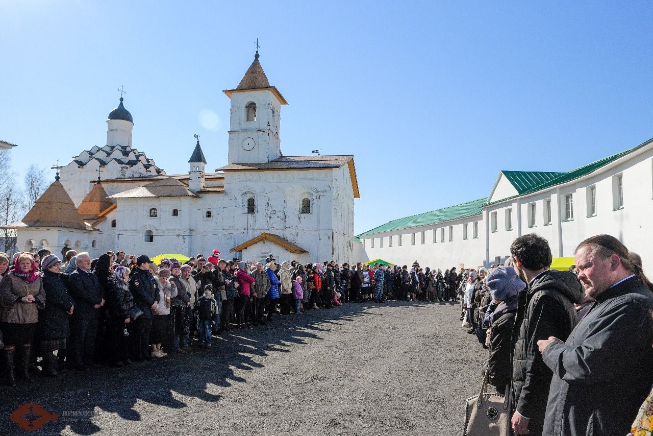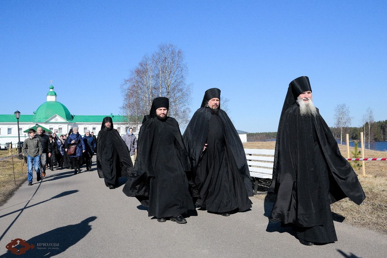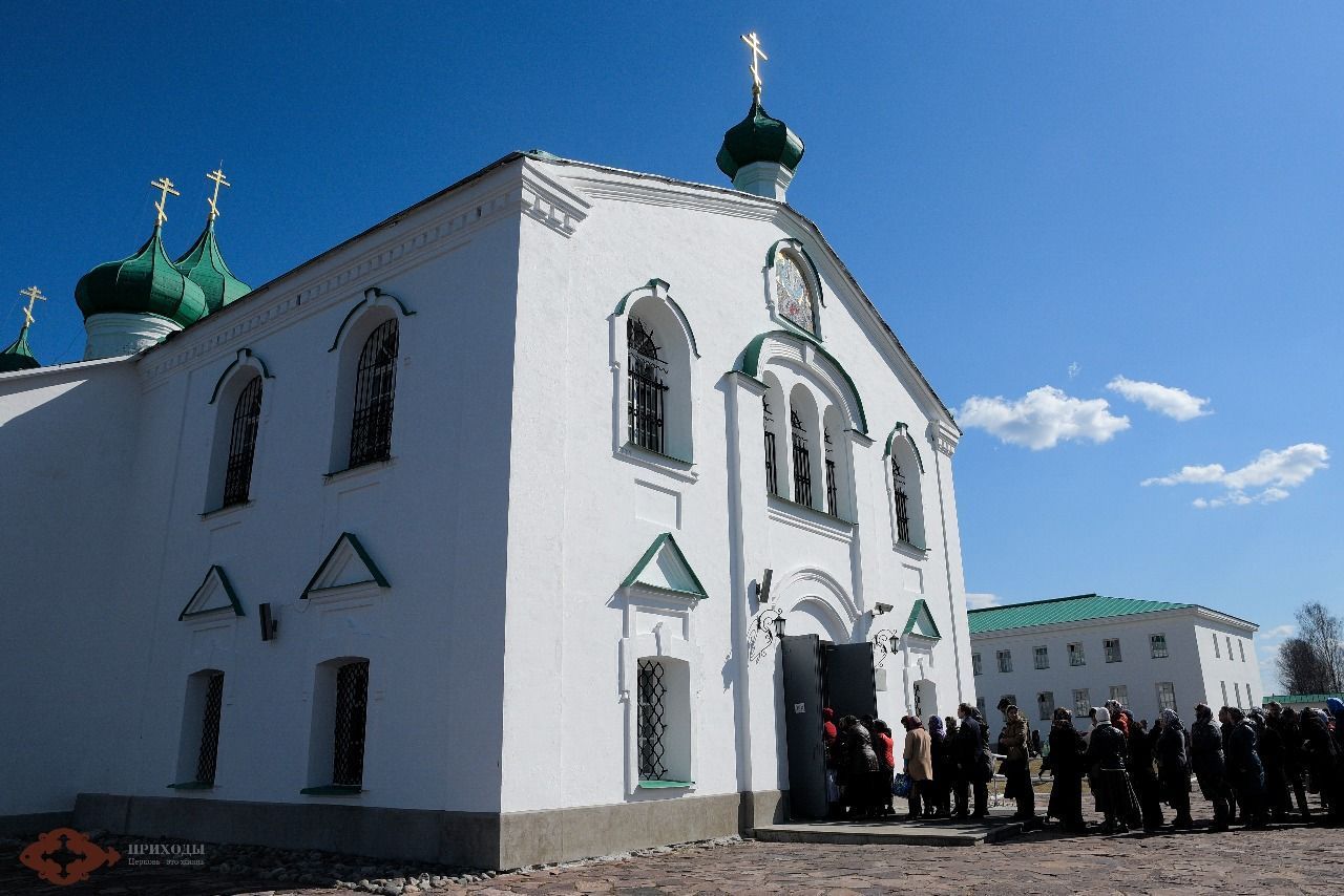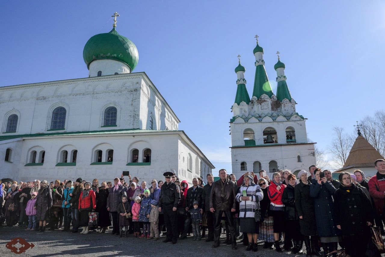 Возможность помолиться вместе со своим Предстоятелеми собрала 17 апреля в Свято-Троицком Александро-Свирском монастыре множество паломников. После воскресной литургии Святейший Патриарх Кирилл передал древней обители образ ее основателя преподобного Александра, написанный вскоре после его преставления. Утерянный в лихолетье гонений, образ был впоследствии найден за рубежом, его выкупил у коллекционеров благотворитель монастыря В.Н. Жимиров. Интересным фоторассказом об этом дне делится наш корреспондент Сергей ПЕТРОВ.