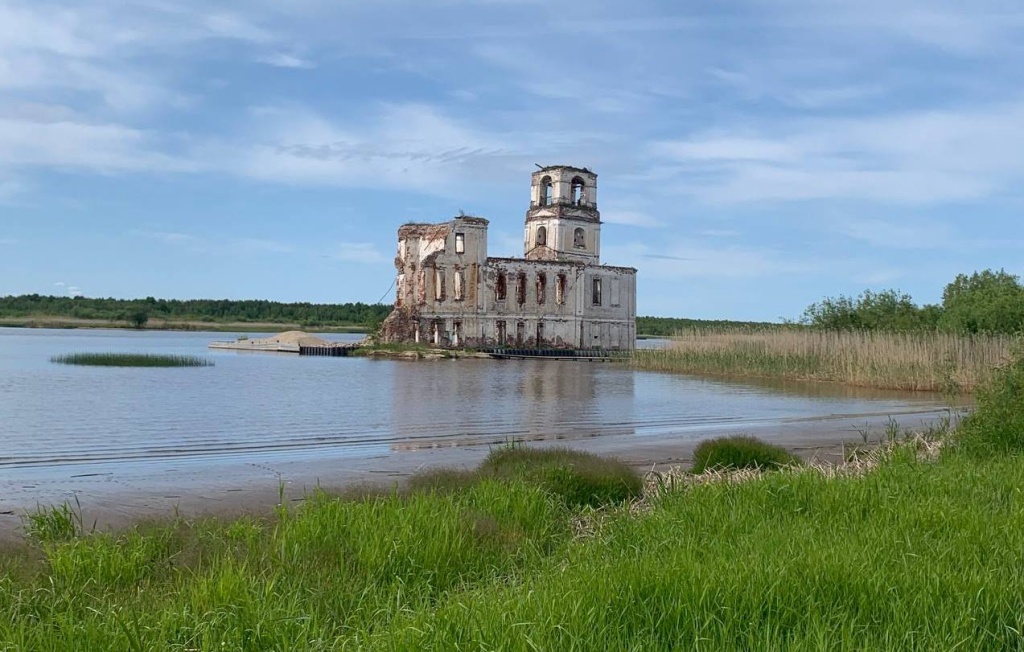 Анор Тукаева: «С самого начала меня «не отпускал» пример Калязинской колокольни. Берегоукрепление острова, на котором она стоит, было сделано в конце 1980-х, и это ее спасло. Крохинская церковь на фотографиях тех лет тоже стоит почти целая, хотя на уровне земли кирпичная кладка сильно подточена водой. Если бы крохинский остров просто подсыпали лет 30–40 назад, здание удалось бы сохранить полностью».