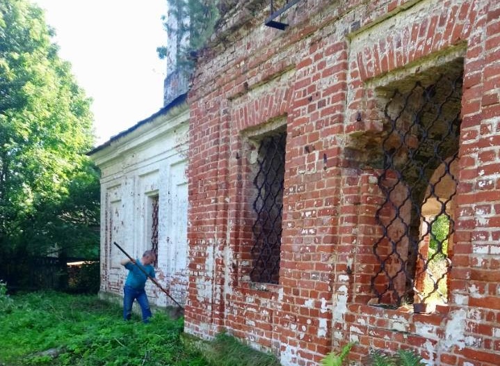 – Наших. Когда мельница работала, все отходы выкидывались рядом с храмом. Помог «закопать» храм и битый кирпич от разрушенной колокольни – ее завалили трактором, а остатки использовали на склады. Уровень грунта из-за этого поднялся на полметра, самого фундамента храма видно не было. Пришлось все расчищать.