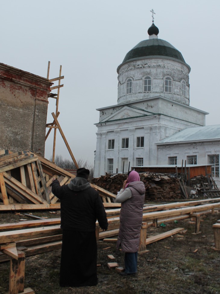 Строители рассказывают, что раньше трудились в совхозе. После его развала освоили строительные специальности. На вопрос о возрождении храмов отвечают высоко и просто: