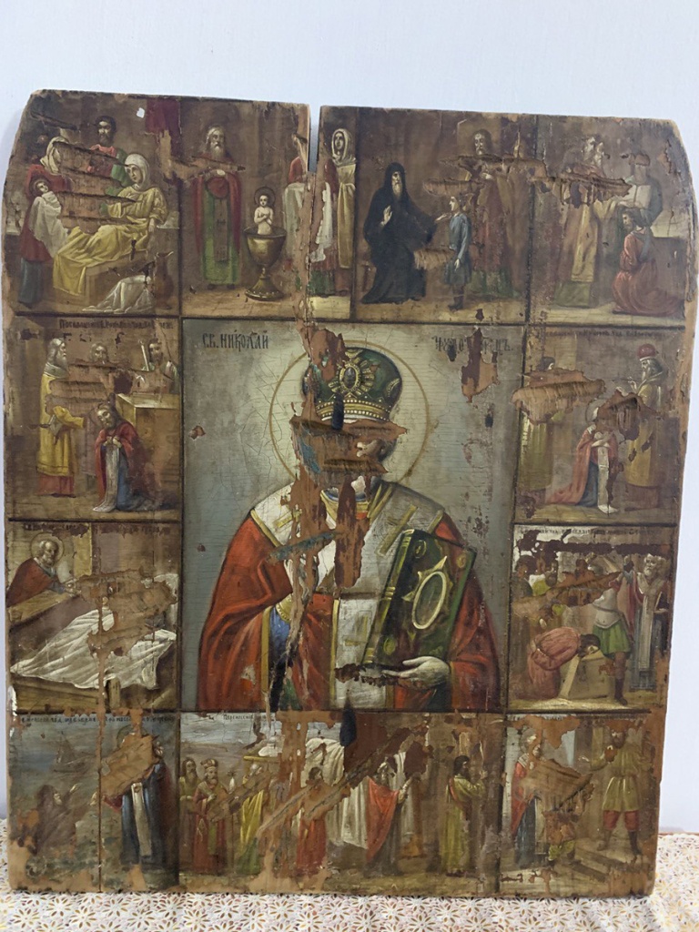 Один из древних образов заставляет сердце биться чаще. Это изрубленная топором икона Николая Чудотворца. Обезумевший человек метил в лик святителя, вырубив его острым лезвием. Но даже без лица мы сразу узнаем любимого святого русского народа – по облачению и Евангелию в руках, по клеймам, содержащим важные моменты жития Николая Угодника. В селе Гари святителя всегда почитали и потому икону, хоть и изуродованную руками богоборцев, сберегли и вернули в храм.