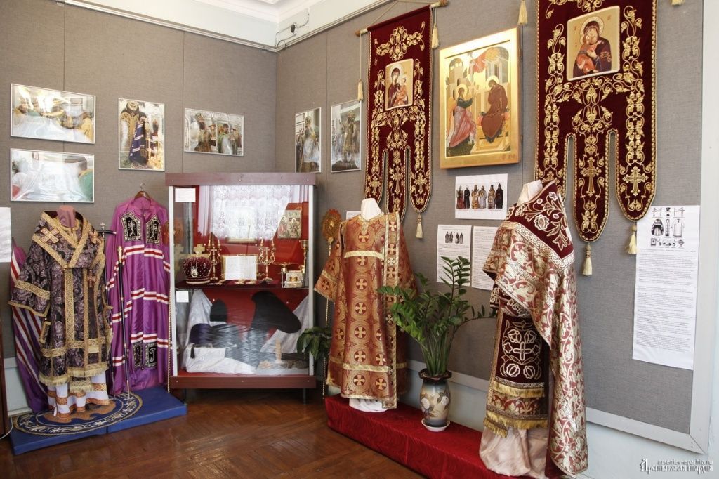 Мы собираем святыни и различные экспонаты для будущего музея. У нас есть мультимедийный архив, старинные книги, картины, церковные облачения, русские народные костюмы из разных губерний, прялки, сундуки, глиняные горшки. Экспозиция растет, и мы устраиваем выставки на различных площадках. За шесть лет существования епархии мы организовали 30 выставок, экспонировавшихся в Приморье. Часть нашего собрания вошла в экспозицию фотокопий древнерусских икон «Дивен Бог во святых Своих!» из фондов музея Андрея Рублёва. За счет средств грантового конкурса «Православная инициатива» эта совместная выставка объехала весь Приморский край, экспонировалась в Комсомольске-на-Амуре, Хабаровске, во Владивостоке.