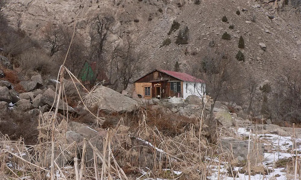 Мы договорились утром выйти в путь, и здесь я совершил ошибку, чуть не стоившую нам жизни. Предположив, что в этом ущелье ещё не выпал снег, я одел лёгкие горные ботинки, а не сапоги. То же самое сделал и мой товарищ.