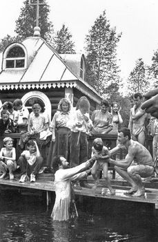 В здание храма ведет два входа. И у одного из них, западного, со стороны колокольни, нам разрешили выгородить себе маленький уголок – 44 квадратных метра. За счет общины мы должны были «обезопасить» выставку – возвести капитальную стену между нами, храмовым богослужебным помещением, и остальными. Нас предупреждали: Боже упаси, чтобы на промышленной выставке от вас не было запаха ладана! Стену эту возвели, оштукатурили, устроили алтарь: три метра на два. То есть престол был придвинут прямо к восточной стене, и еще метр оставался между импровизированными Царскими вратами и престолом. Но ничего, стали служить.