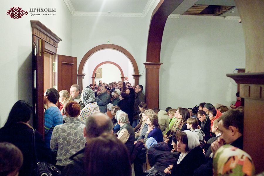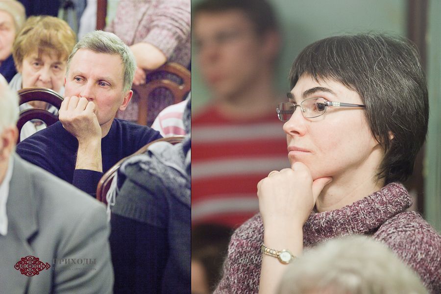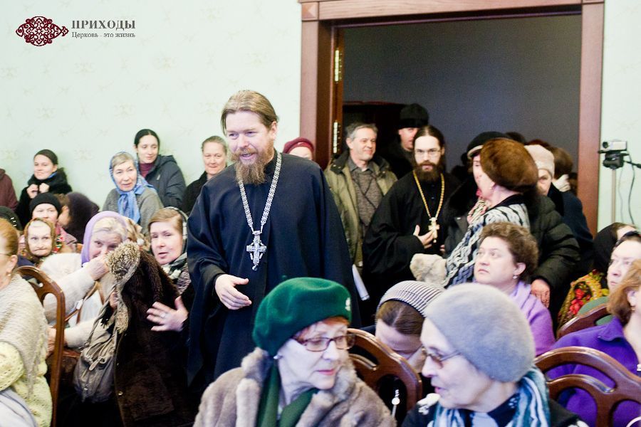Уютный зал не вместил всех пришедших – немалая их часть разместилась в коридоре, куда была проведена видеотрансляция. Казалось, еще вот-вот – и «галерке» придется занять места где-то возле крыльца. Впрочем, столь тесное соседство участников не помешало продолжительному и живому общению отца Тихона с аудиторией — практически все собравшиеся остались до конца. Гость «Илиинской гостиной» решил не читать лекцию, а ответить на вопросы слушателей. Такая форма общения оказалась очень востребованной, и поток записок не прекращался все два с половиной часа встречи.