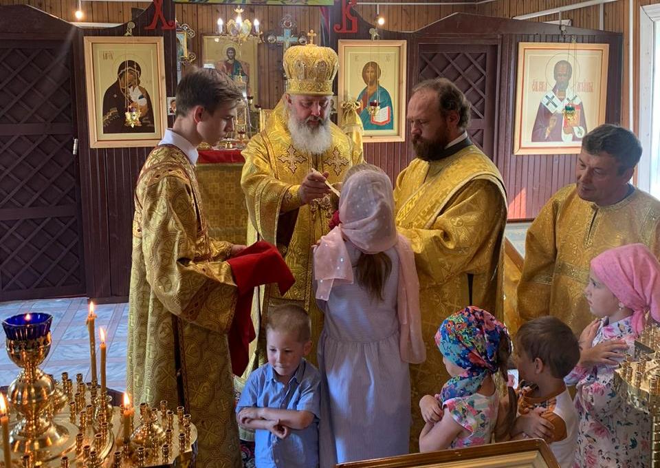 Он прилетел в субботу, с ним прибыли протодиакон Димитрий Бухаров, квартет «Знамение» под руководством протодиакона Антония Смолина и два иподиакона. Служили вечером бдение, а на воскресной литургии причастились шестьдесят четыре человека.