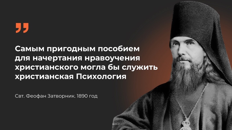 Еще в 1890 году он писал: «Самым пригодным пособием для начертания нравоучения христианского могла бы служить христианская Психология». Интересно, что святитель написал слово «психология» с заглавной буквы, показывая тем свое особое к ней отношение. Что же он понимал под «христианской психологией»? Вот выдержки из письма святителя Феофана от 1 ноября 1889 года: «Вот, по-моему, какова должна быть программа этой психологии. Изобразить состав естества человеческого: дух, душа и тело… и затем описать их… 1) в естественном состоянии, 2) в состоянии под грехом, и 3) в состоянии под благодатью».