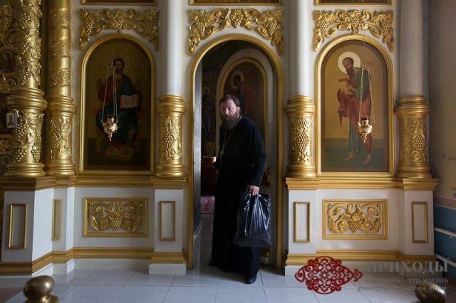 В ближайшей же округе у нас дачные участки и частные дома, из них больше половины зимой пустует, да и мало среди проживающих там прихожан. Раньше тут был прекрасный лес, много зверей водилось — и зайцы, и лоси, и олени, и белки. Сейчас же вместо леса — свалка вокруг территории храма и кладбища. Много раз мы пытались что-то сделать, с администрацией договаривались, но так и не можем решить эту проблему. Шлагбаум не поставишь — тут сквозной проезд. А люди едут на машинах с дач и кидают в окошко свои мусорные мешки. Мы стараемся убирать мусор, но очень уж его много.
