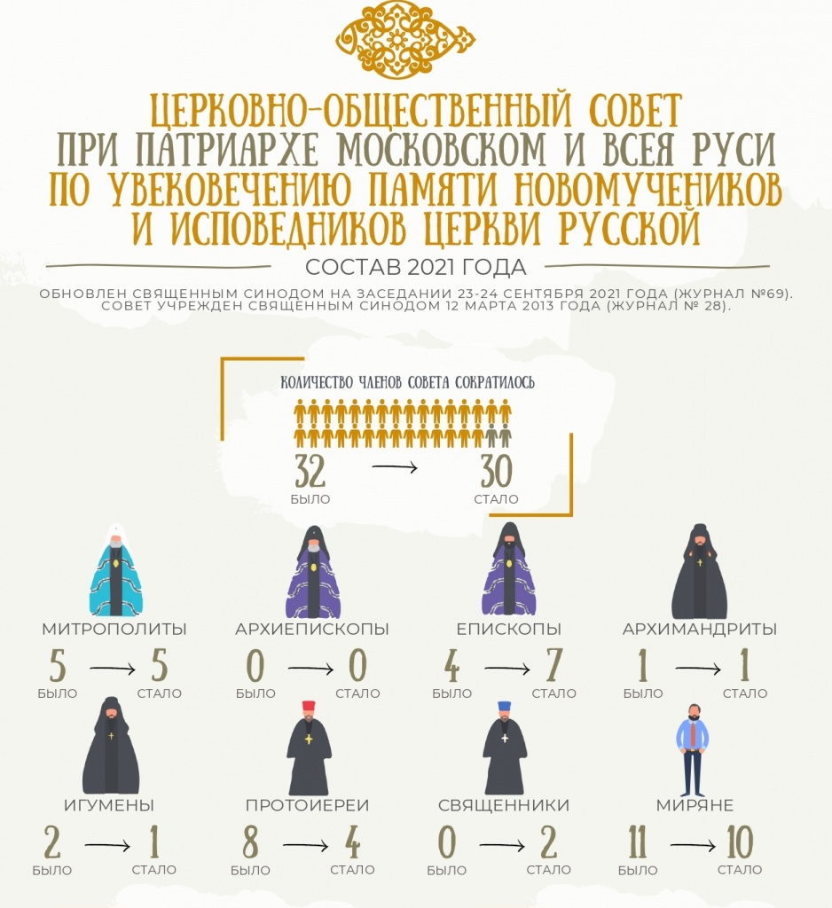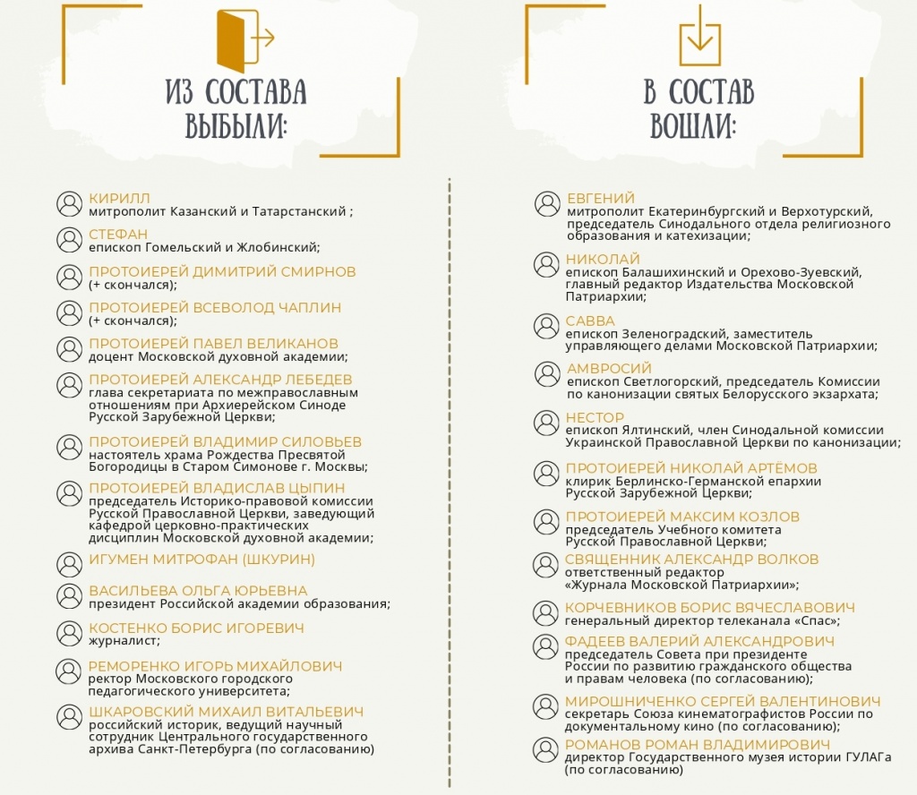 Для удобства читателей портал «Приходы» подготовил инфографику, посвященную изменениям в составе Церковно-общественного совета.